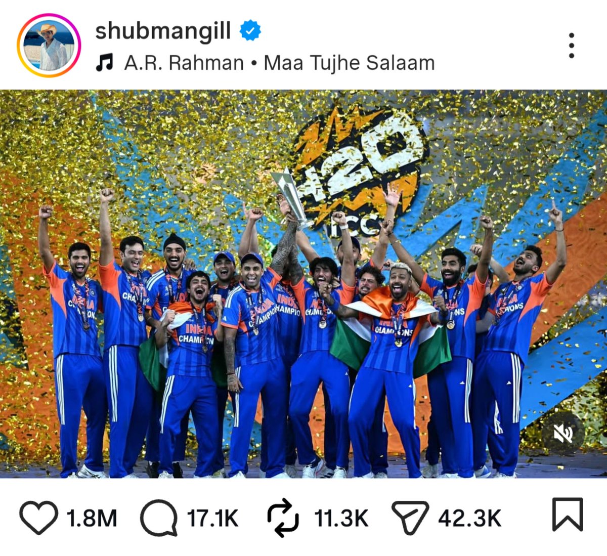भारत के वनडे और टेस्ट कप्तान शुभमन गिल हाल ही में सोशल मीडिया पर अपनी सक्रियता के कारण सुर्खियों में हैं। भारत ने हाल ही में न्यूज़ीलैंड के ख़िलाफ़ ICC T20 विश्व कप 2026 का फ़ाइनल जीतकर एक ऐतिहासिक उपलब्धि हासिल की है। फ़ाइनल मैच 8 मार्च को अहमदाबाद के नरेंद्र मोदी स्टेडियम में खेला गया था।
