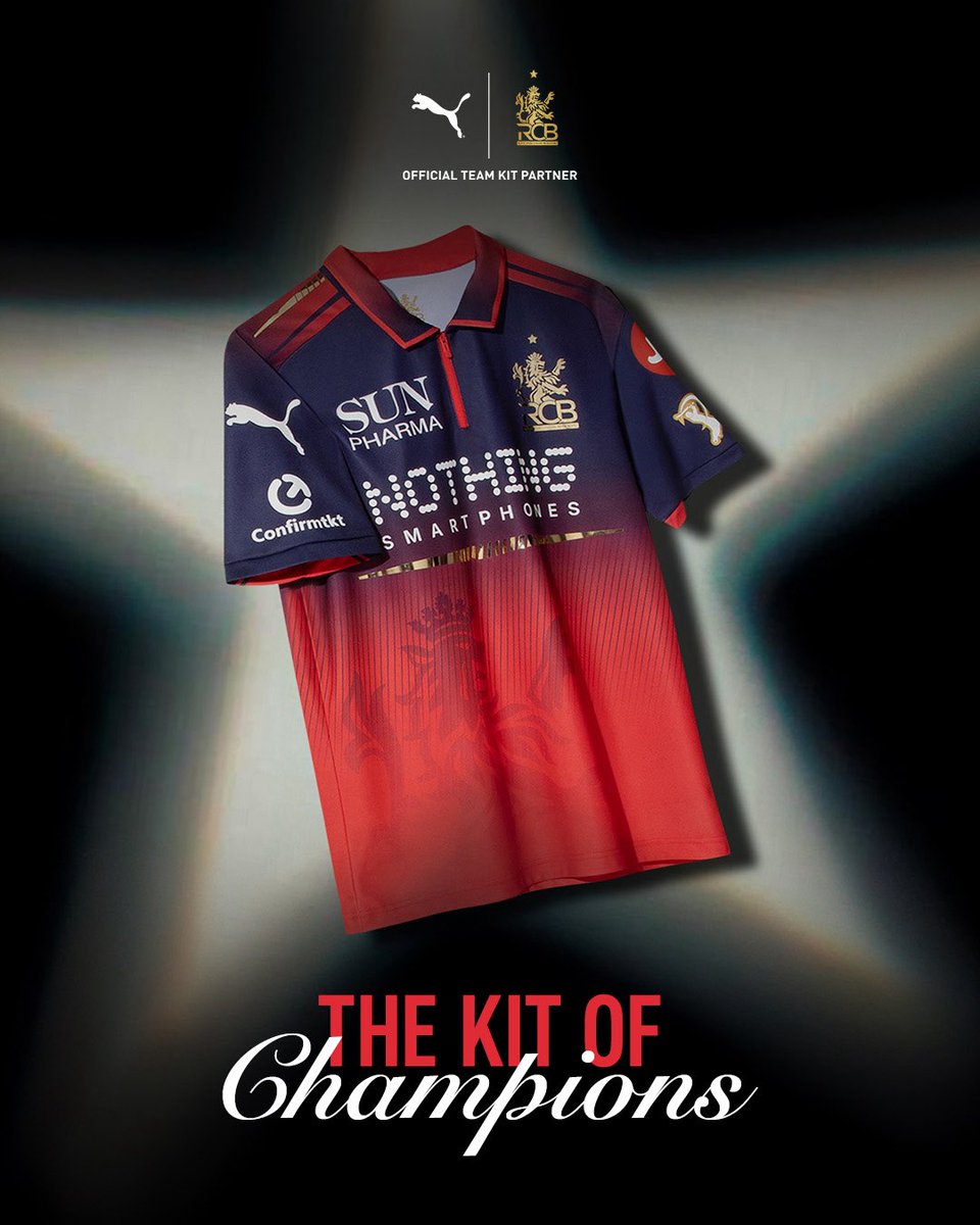 प्यूमा के सहयोग से जारी की गई नई किट में टीम के प्रतीक चिन्ह के ऊपर एक सुनहरा सितारा बना हुआ है। यह सितारा RCB की 2025 में ऐतिहासिक पहली IPL ख़िताब जीत का प्रतीक है, जब उन्होंने आखिरकार ट्रॉफ़ी के लिए अपने लंबे इंतज़ार को समाप्त किया था।