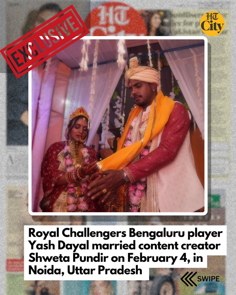 भारतीय क्रिकेटर यश दयाल ने कथित तौर पर सोशल मीडिया इन्फ्लुएंसर श्वेता पुंडीर से 4 फरवरी को उत्तर प्रदेश के नोएडा में एक निजी समारोह में शादी कर ली है। हिंदुस्तान टाइम्स (एचटी सिटी) की रिपोर्ट के अनुसार, शादी बहुत ही सादे तरीके से हुई, जिसमें दोनों पक्षों के केवल करीबी परिवार के सदस्य ही शामिल हुए।