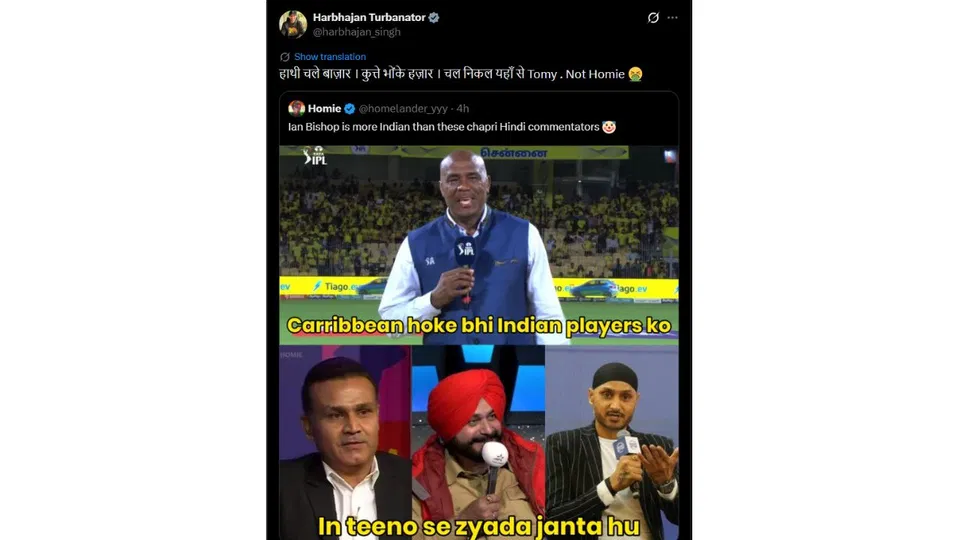 भारतीय क्रिकेट प्रशंसक, विशेषकर सोशल मीडिया पर, अक्सर वैध आलोचना और सीधे-सीधे अपमान के बीच की रेखा को धुंधला कर देते हैं। IPL 2026 के मौजूदा सीज़न के दौरान, कई भारतीय फ़ैंस X पर जाकर लीग के हिंदी कमेंटेटरों का मज़ाक उड़ाते हुए मज़ेदार मीम्स साझा कर रहे हैं, यहाँ तक कि हरभजन सिंह, वीरेंद्र सहवाग और आकाश चोपड़ा जैसे पूर्व क्रिकेटरों को भी निशाना बना रहे हैं।