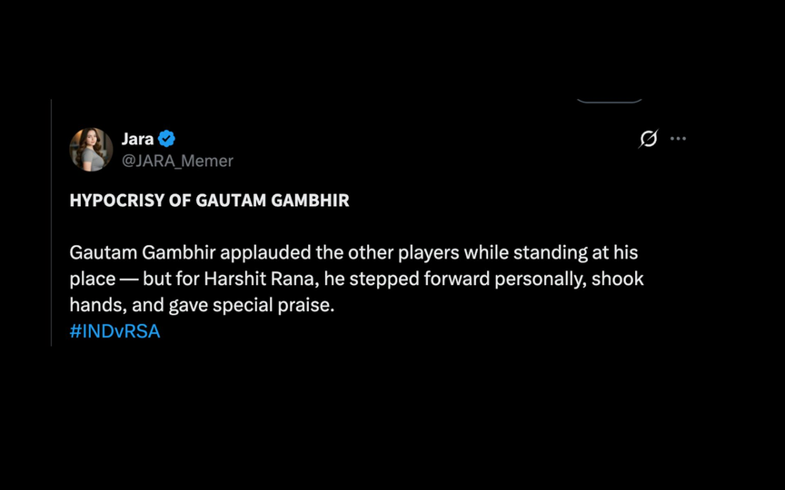 गंभीर पर भेदभाव का आरोप [Source: @Jara_1319/x.com]