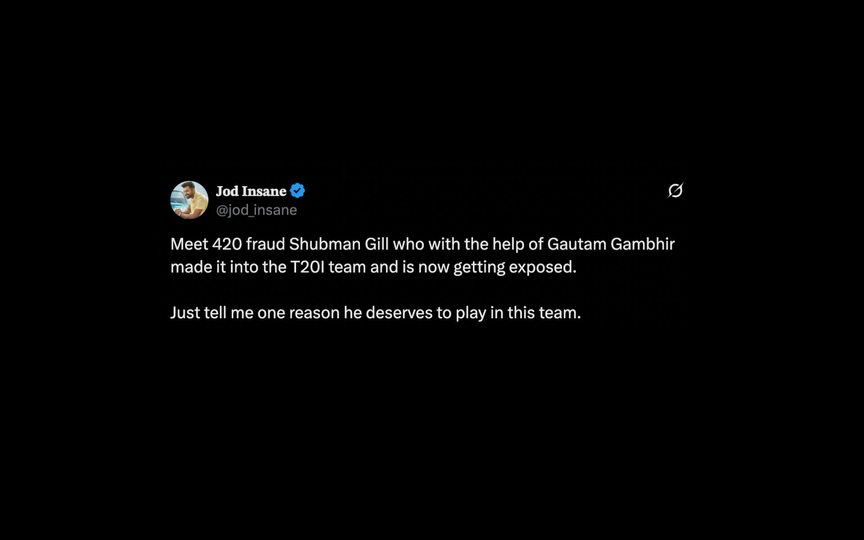 "मिलिए 420 धोखाधड़ी करने वाले शुभमन गिल से, जिन्होंने गौतम गंभीर की मदद से T20 टीम में जगह बनाई और अब उनका पर्दाफाश हो रहा है।"