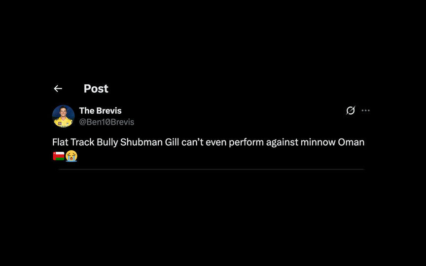 ऐसा लगता है जैसे भारतीय फ़ैंस शुभमन गिल के ओमान के ख़िलाफ़ फ़्लॉप होने का इंतजार कर रहे थे, और यहां उनके फ़्लॉप होने के बाद के कुछ ट्वीट्स दिए गए हैं।